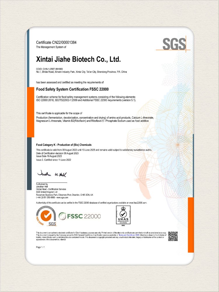 汕頭佳禾生物科技有限公司是一家致力于氨基酸及其衍生物研發、生產和銷售的國家高新技術企業,先后通過了國家藥品GMP認證,ISO9001質量體系認證、ISO14001環境管理體系認證。目前,公司擁有“廣東省專精特新中小企業”、“廣東省氨基酸產品工程技術研究中心”、“汕頭市生物發酵工程技術研究開發中心”、“汕頭市知識產權優勢企業”、“多項國家發明專利”、“廣東省守合同重信用企業”等多項資質和榮譽,旗下“佳禾牌”系列產品已成為原料藥行業知名品牌。 新泰市佳禾生物科技有限公司成立于2012年8月,注冊資金2億元,公司位于山東泰安新泰市新汶工業園區,是國 家級高新技術企業、山東省“專精特新”企業、山東省制造業單項冠軍企業、泰安市科技型中小企業、泰安市農業產業化龍頭企業、中國生物發酵產業協會理事單位。